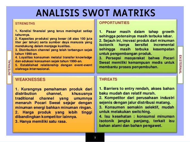 1. Analisis SWOT (Strengths, Weaknesses, Opportunities, Threats): Analisis SWOT adalah salah satu analisis yang paling umum digunakan dalam tahap matching stage. Analisis ini mengidentifikasi kekuatan (strengths) dan kelemahan (weaknesses) internal organisasi, serta peluang (opportunities) dan ancaman (threats) eksternal yang dihadapi organisasi. Dengan membandingkan faktor-faktor ini, organisasi dapat mengidentifikasi strategi yang sesuai untuk memanfaatkan peluang dan mengatasi tantangan.